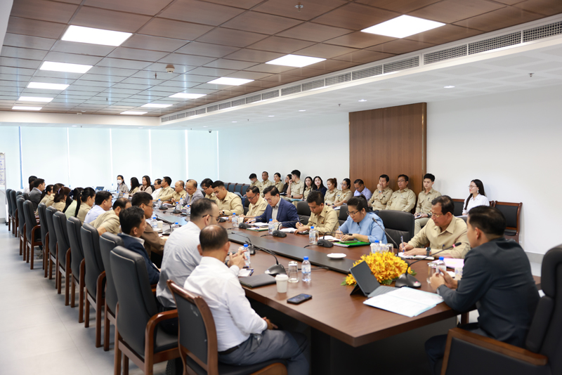 The meeting brought together H.E. Prom Virak, Director-General, along with Deputy Director-Generals, Department Directors and Acting Directors, Deputy Directors, Heads and Deputy Heads of Offices, and Heads of Divisions — totaling around 45 officials.