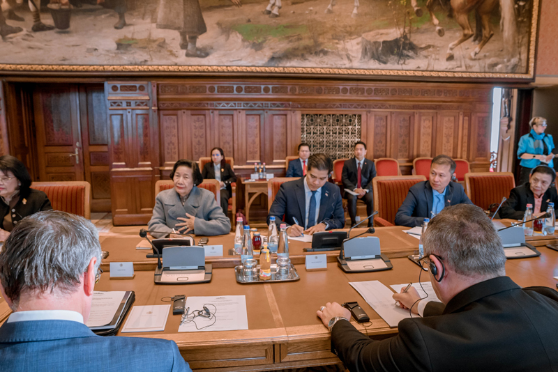 Samdech Khuon Sudary also briefed her counterpart on the recent peace agreement reached between Cambodia and Thailand, describing it as a significant step toward strengthening regional stability. She noted that the implementation process should be closely monitored by both sides and with the attention of the international community to ensure lasting success.
