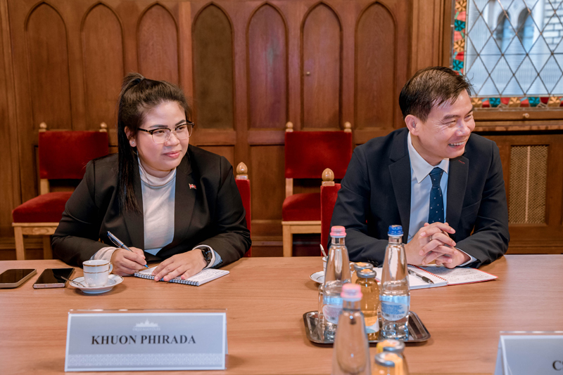 The discussion, also attended by H.E. Khuon Davith, Deputy Secretary-General of the National Assembly, and H.E. Dr. Chheang Vannarith, Chairman of the Advisory Council of the National Assembly, focused on enhancing cooperation and ensuring the effective implementation of the Memorandum of Understanding (MoU) signed between the two National Assemblies and their respective Secretariats-General.
