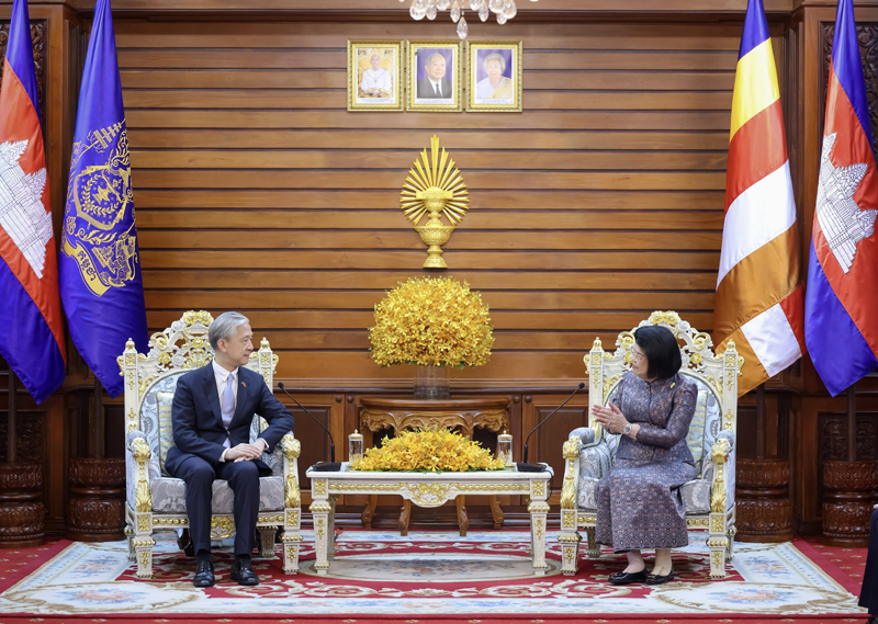Phnom Penh, 31 March 2026 — Samdech Maha Rathsapheathika Thipadei Khuon Sudary, President of the National Assembly of Cambodia, on Tuesday received a courtesy call from H.E. Wang Wenbin, Ambassador of the People’s Republic of China to Cambodia, at the National Assembly Palace.