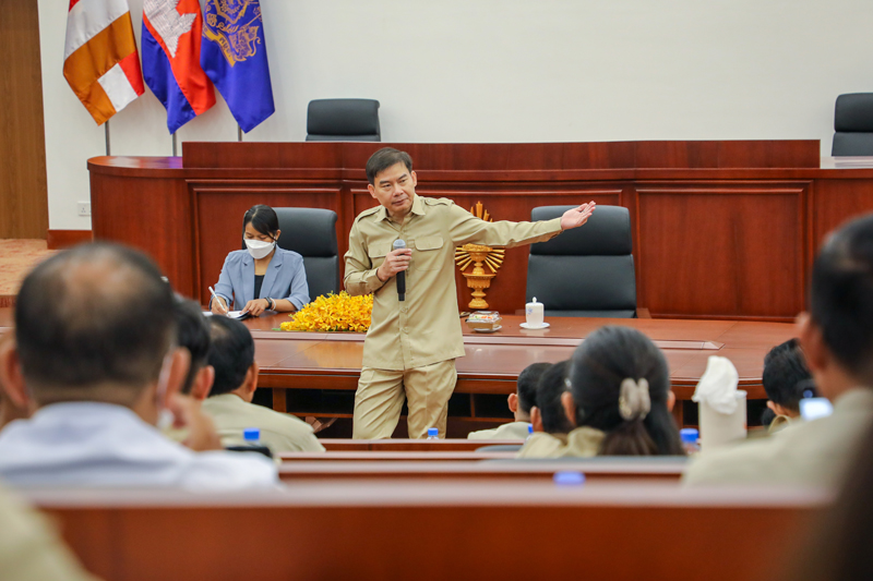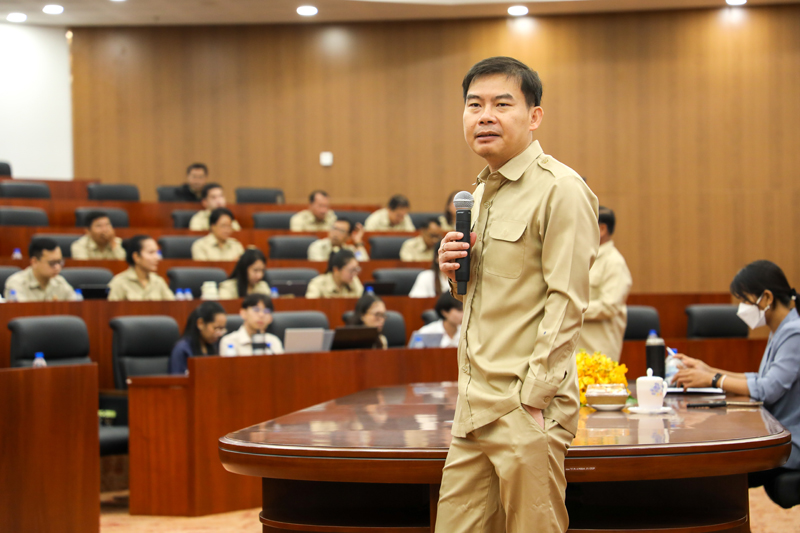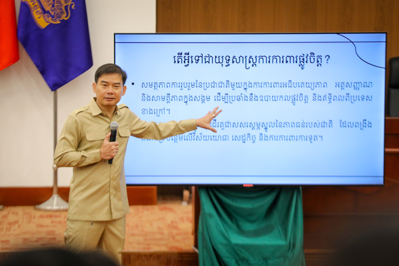 During the session, H.E. Dr. Chheang Vannarith explained that psychological defense involves maintaining composure, avoiding tension and emotional disturbance, and preserving confidence in the government. He stressed the importance of strengthening mental resilience to prevent discouragement, enabling officials to perform their duties effectively for the benefit of both individuals and society.