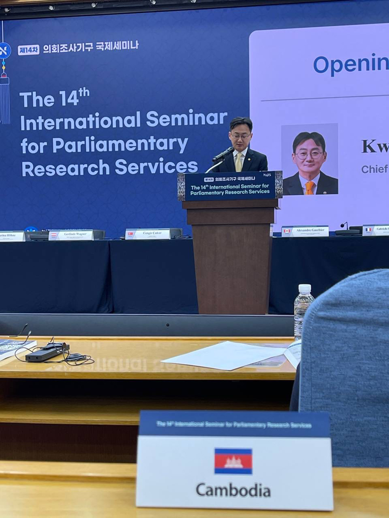 Seoul, 21–22 October 2025 — H.E. Dr. Keo Piseth, Permanent Deputy Secretary-General and Chief of the Cabinet to the President of the National Assembly, led the NA Secretariat-General delegation to attend the 14th International Seminar for Parliamentary Research Services in the Republic of Korea.