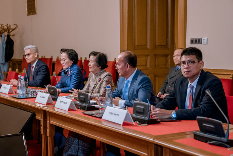 Budapest, 27 October 2025 — During the official and friendly visit to Hungary led by Samdech Maha Rathsapheathika Thipadei Khuon Sudary, President of the National Assembly of Cambodia, Hon. Lork Kheng, Chairwoman of Commission 8 of the National Assembly of Cambodia, and Hon. Nin Saphon, Chairwoman of Commission 9, held a working meeting with Hon. Zoltán Varga, Chairman of the Committee on Social Welfare of the Hungarian National Assembly, and Hon. László Lóránt Keresztes, Chairman of the Committee on Sustainable Development.