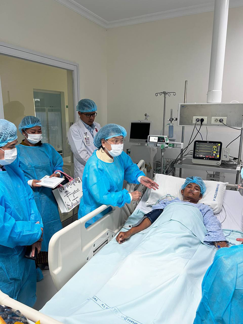 Samdech Khuon Sudary extended her sincere gratitude to the medical team at Calmette Hospital for their professional care and dedication. She further expressed heartfelt appreciation to Samdech Kittiprithbandit Bun Rany Hun Sen, President of the Cambodian Red Cross, for her steadfast humanitarian support, including the dispatch of assistance teams to provide materials, financial support, and emotional care to the victims.