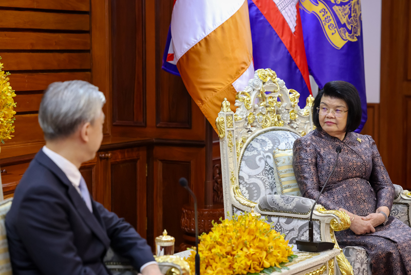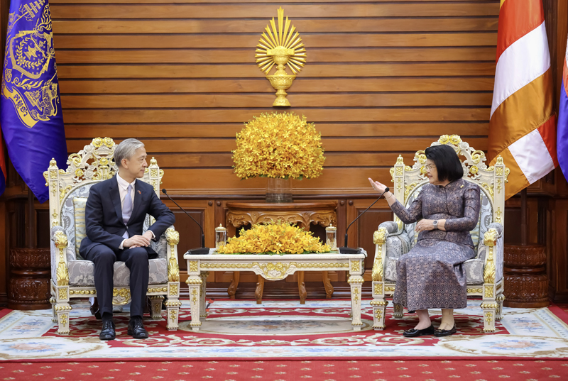 Phnom Penh, 31 March 2026 — Samdech Maha Rathsapheathika Thipadei Khuon Sudary, President of the National Assembly of Cambodia, on Tuesday received a courtesy call from H.E. Wang Wenbin, Ambassador of the People’s Republic of China to Cambodia, at the National Assembly Palace.